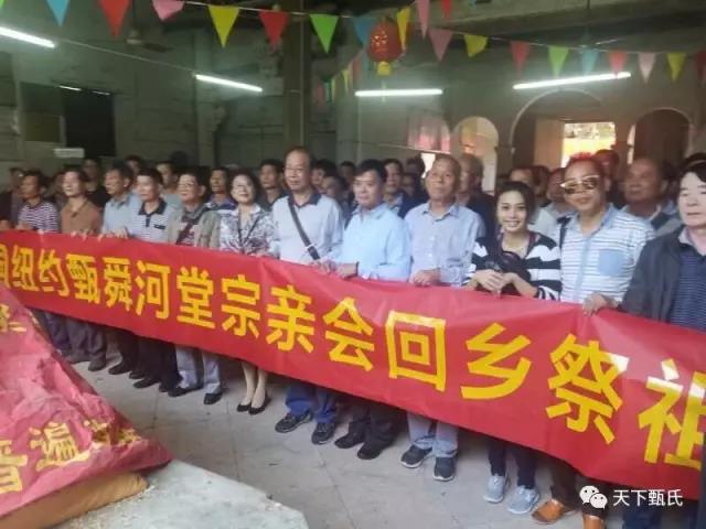 纽约甄舜河堂甄建设副主席宣读祭文,把人们的思绪带到八百年前舜河祖举家南迁的羊肠小路上,好像看到一个北方汉子带领家人长途跋涉的情景;仿佛见到族群祖先在邑地辛勤耕耘,建设一个潭江打鱼、沃野收获的家园;好似目睹新昌大地上青砖瓦房袅袅炊烟的气象;似乎极目舜河祖寻找宜居乐土一日千里的巨变。人们的感恩之情悠然而起,敬畏之心顿然而生,发奋图强之念从脑海而出。